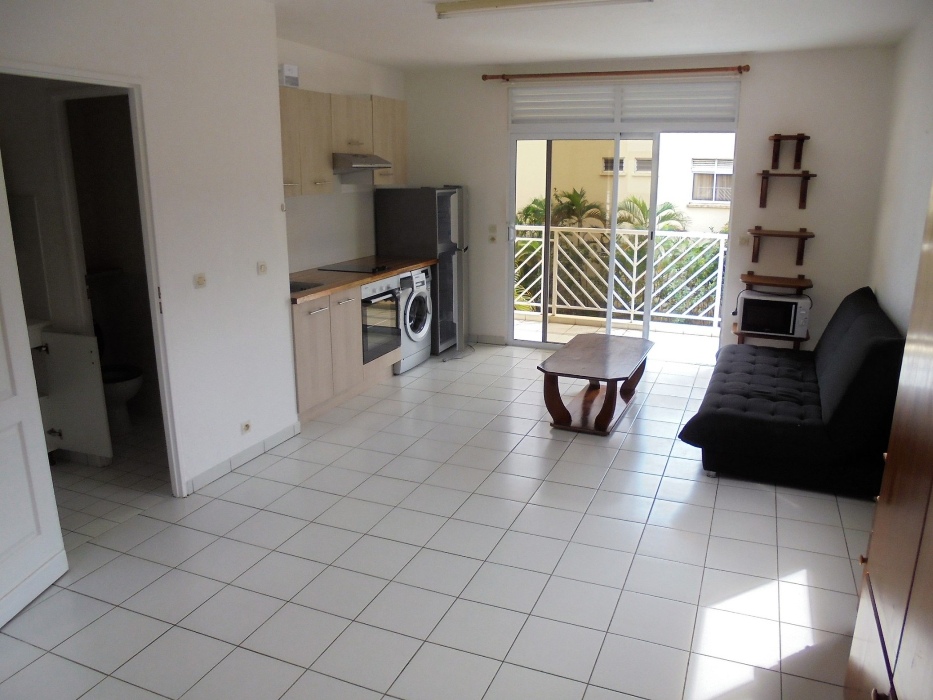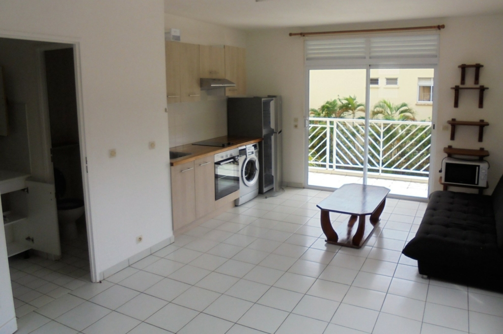 Ce bien se compose d’un séjour climatisé avec cuisine équipée, d’une salle d’eau avec WC, ainsi que d’une agréable terrasse couverte de 8 m². Une place de parking vient compléter ce logement.